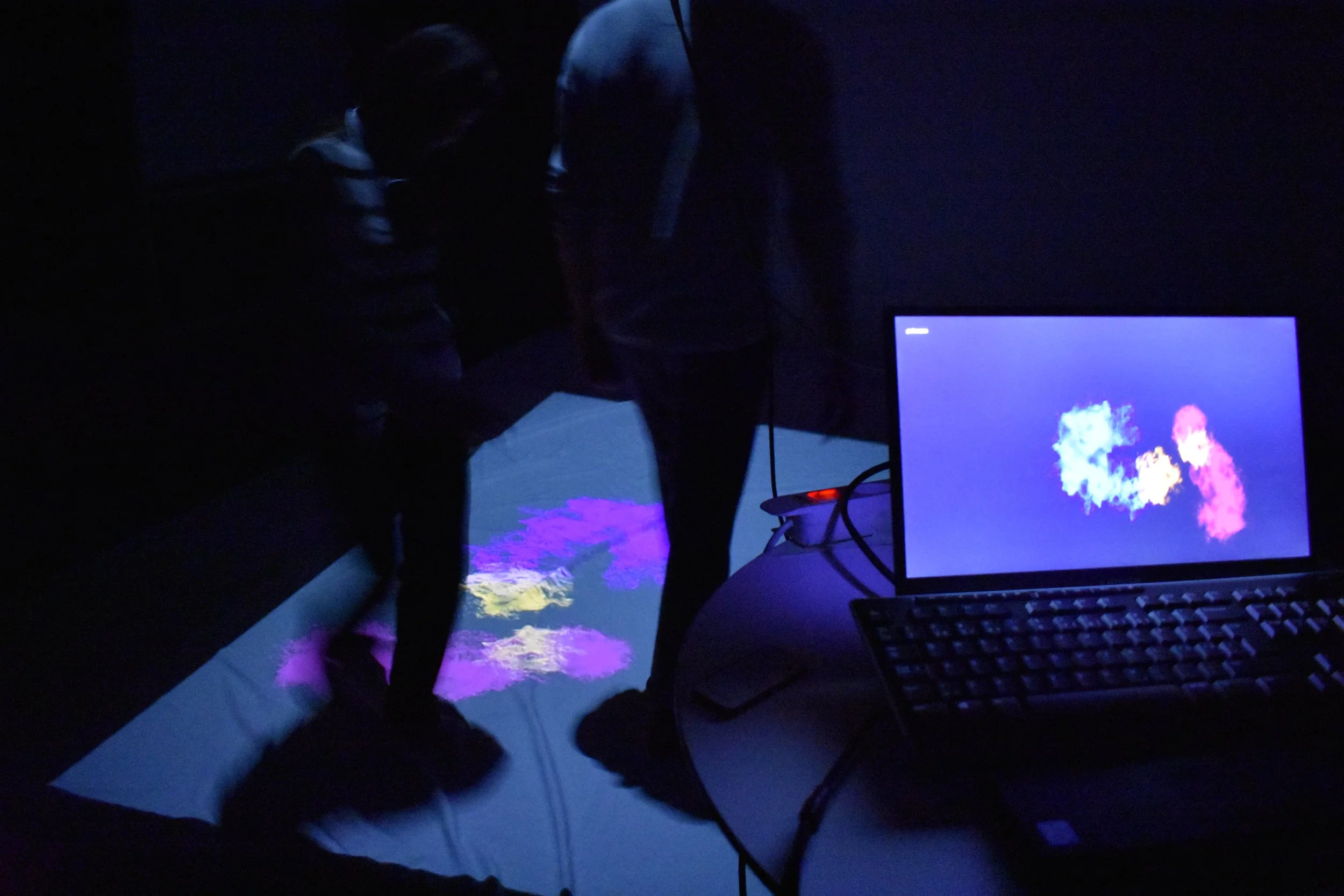 Pulse flow focuses on the affective aspects of human connection, exploring how an interactive installation can create the feeling of connection between two participants. By removing verbal cues and relying on visual and auditory elements such as heartbeats, the installation tries to create a space where participants can experience a shared connection through their bodies and senses. The theoretical framework examines the nature of connection and related theories, while incorporating relevant design strategies in relation to technology, such as Interpersonal Distance, Affective-Self Disclosure, and Shared Experiences and Play. These and other strategies were integrated into the design features aiming to encourage self-awareness, awareness of the other participant, and potentially foster a feeling of connection between them. The project’s implementation was achieved by integrating Kinect v2 for position tracking, real-time heartbeat detection (using the ESP32 M5Stack Atom Matrix and a pulse sensor), projections, and TouchDesigner as the primary tool for audiovisual integration. The evaluation combined both quantitative (System Usability Scale (SUS) questionnaire, movement proximity tracking and heart rate data) and qualitative (semi-structured interviews) methods. A total of 16 participants were tested, consisting of 4 familiar and 4 unfamiliar couples. The results revealed that the installation mediated a sense of connection, particularly through shared situational connection, non-verbal interaction and others. Familiar couples engaged more playfully and interactively, while unfamiliar couples described the experience as calming and meditative, appreciating the non-verbal communication. Some technical challenges, such as position tracking issues and sensor calibration errors, occurred. Future improvements will focus on enhancing interactivity and addressing the identified technical limitations.